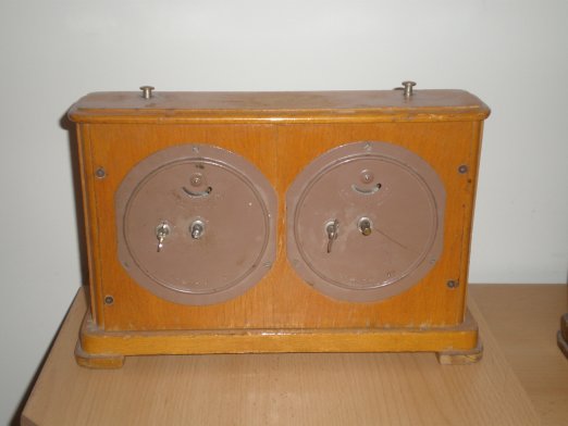Jerger Chess Clock - Germany Braille version (for blind player). No glass, special flags, little marbles on each hour. Click/zoom in to see details Both clocks seems to work fine. Beautiful vintage RARE version of the world famous Jerger clock. Ask questions! I have NEVER seen one for sale. $1,500 minimum offer. |